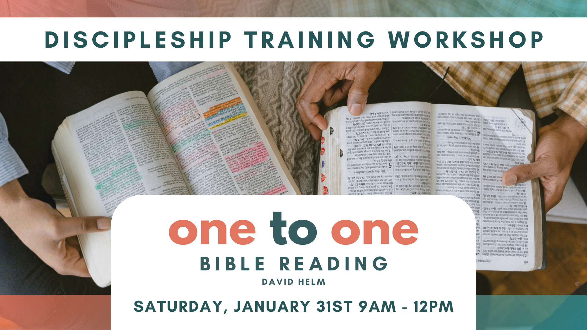 The mission Jesus gave His followers is this: make disciples of all people. In our busy lives, we can get stuck in our faith, and discipleship in our own lives and with others can become an afterthought. Join us on Saturday, January 31st from 9 AM to 12 PM at CCC for a practical time to be encouraged and equipped with discipleship tools that can fit into your everyday lives so that we can make disciples "as we go."